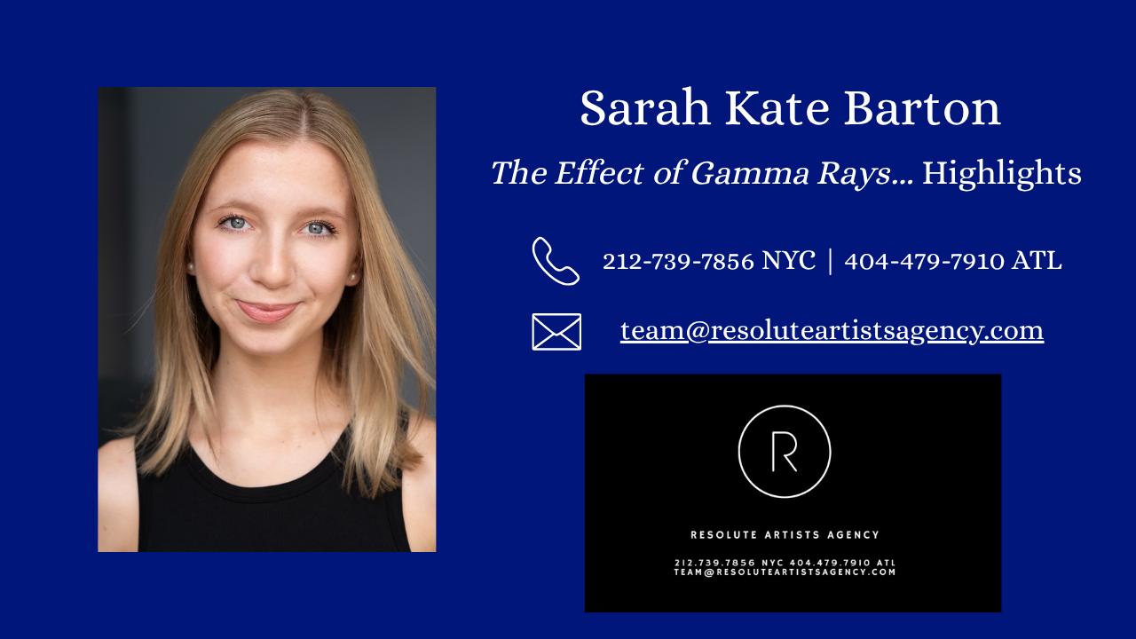 My Media Selections from "The Effect of Gamma Rays..." Selections from "The Effect of Gamma Rays..." "Athena" Scene "Athena" Scene Heretic Monologue Heretic Monologue Past Productions Ruth, The Effect of Gamma Rays on Man-in-the-Moon Marigolds Texas Christian University Gladys, The Skin of Our Teeth Texas Christian University Pippa, Spider's Web Pocket Sandwich Theatre Laura, The Glass Menagerie Theatre Off the Square Alice, The Best Christmas Pageant Ever Alabama Shakespeare Festival #11, The Wolves Texas Christian University Phillipa, A Murder Is Announced Stolen Shakespeare Guild